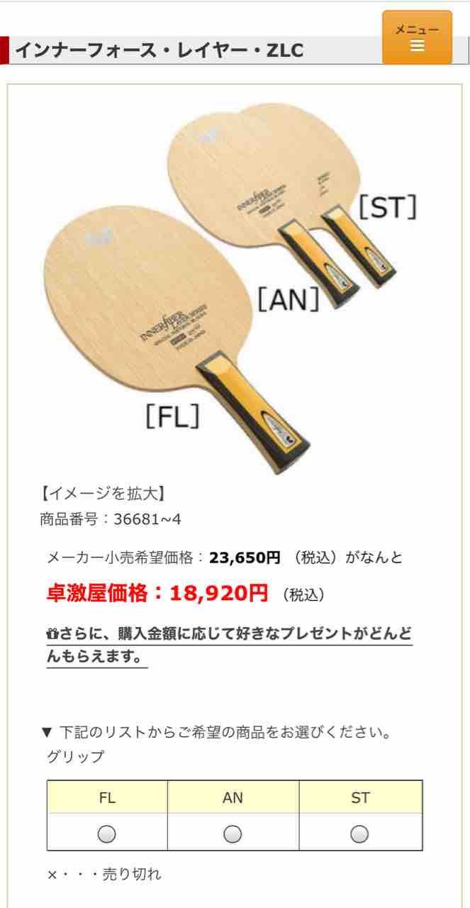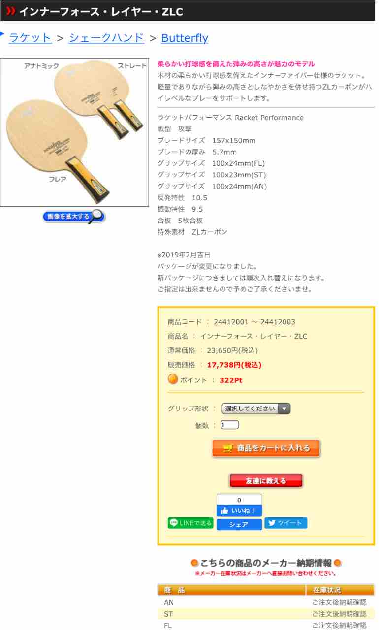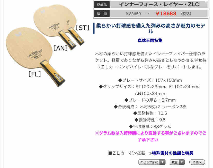 ただ、現行品は別。だってメーカー取り寄せなりネット通販なり卓球ショップなりで容易に購入できるじゃないですか。ネット価格結構割引かれてるじゃん。ここでインナーフォースレイヤーZLCを例に挙げてみる。